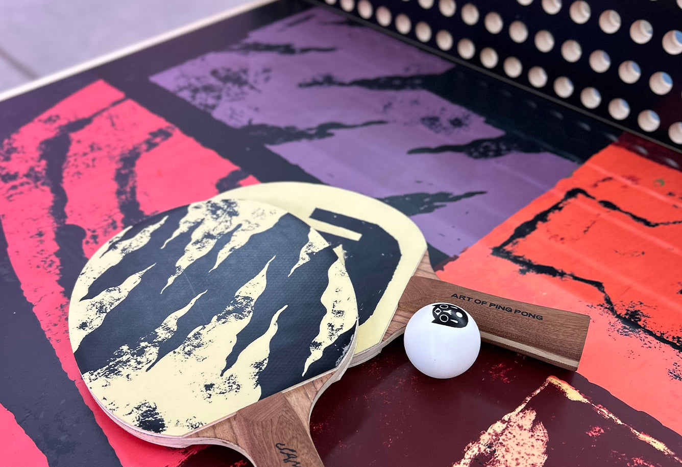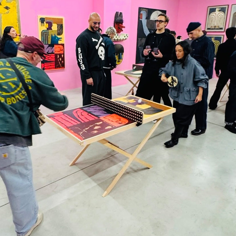“Ping pong is rhythmic, fast, and about flow and connection,” he told us. “It resonates with how I see art — as movement between people.”