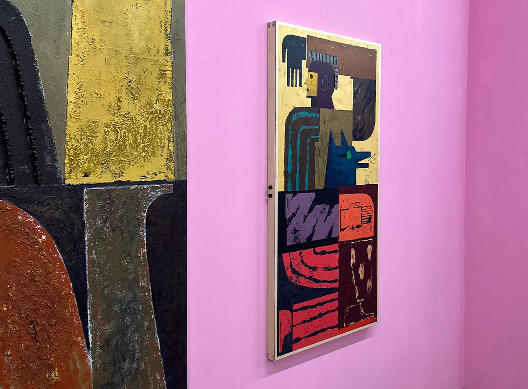 His practice began instinctively, as a way of making sense of things he couldn’t easily express in words. Over time, texture, layering, and simplified forms became his vocabulary. Many of his pieces draw from his Indonesian heritage and a deep connection to the tribes and civilisations he feels tied to across time.