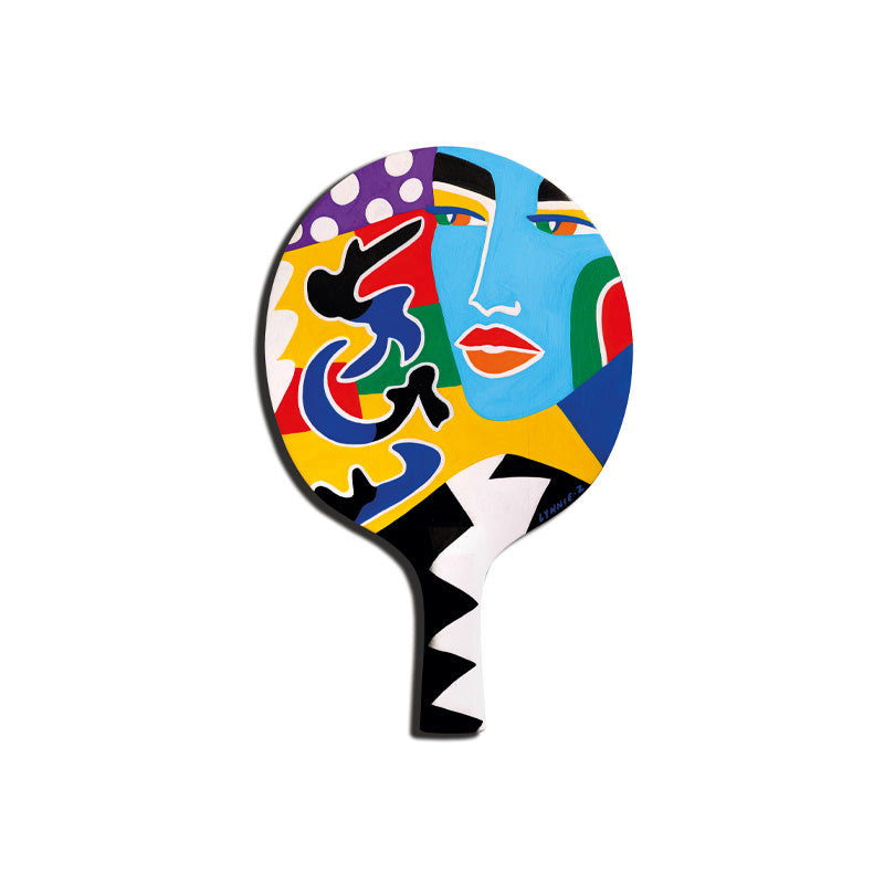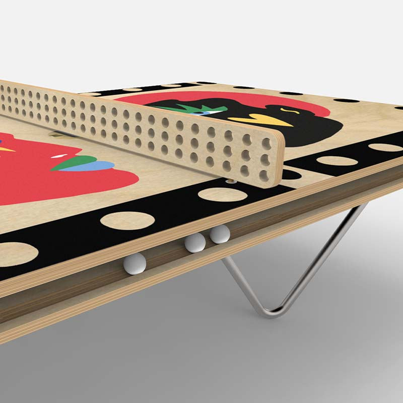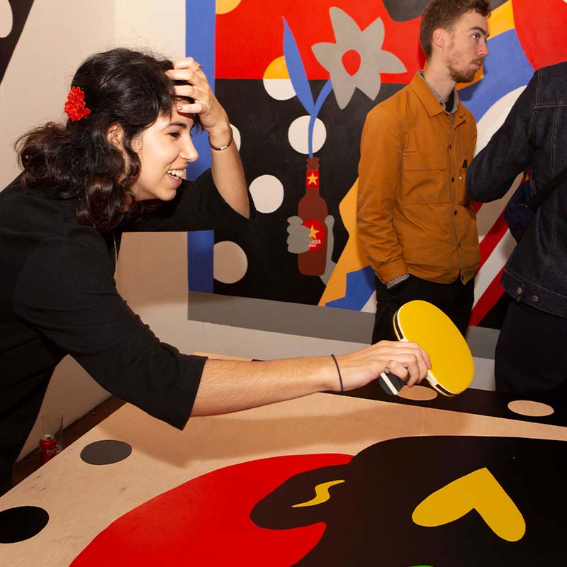 In 2015 we invited Lynnie to be part of our exhibition and charity auction. We worked with her again in 2018 on a joint exhibition in London creating a ping pong playground centred around one of our full-size tables featuring Lynnie’s artwork.