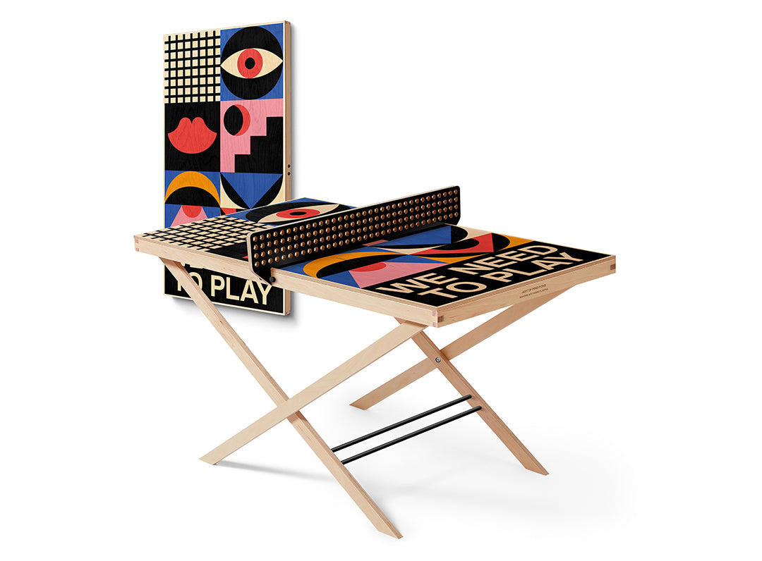 This hand-crafted, wall-mountable mini table tennis table is a numbered, signed and authenticated edition of 25.