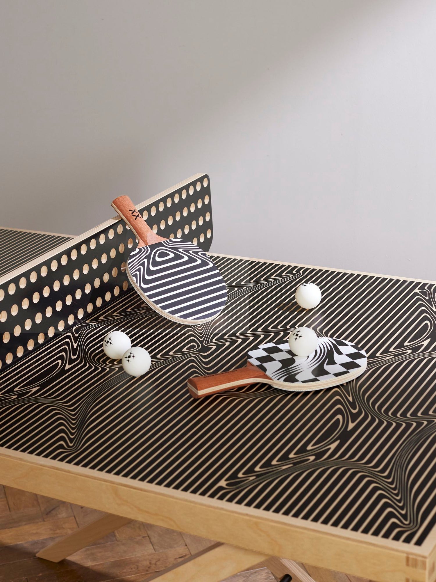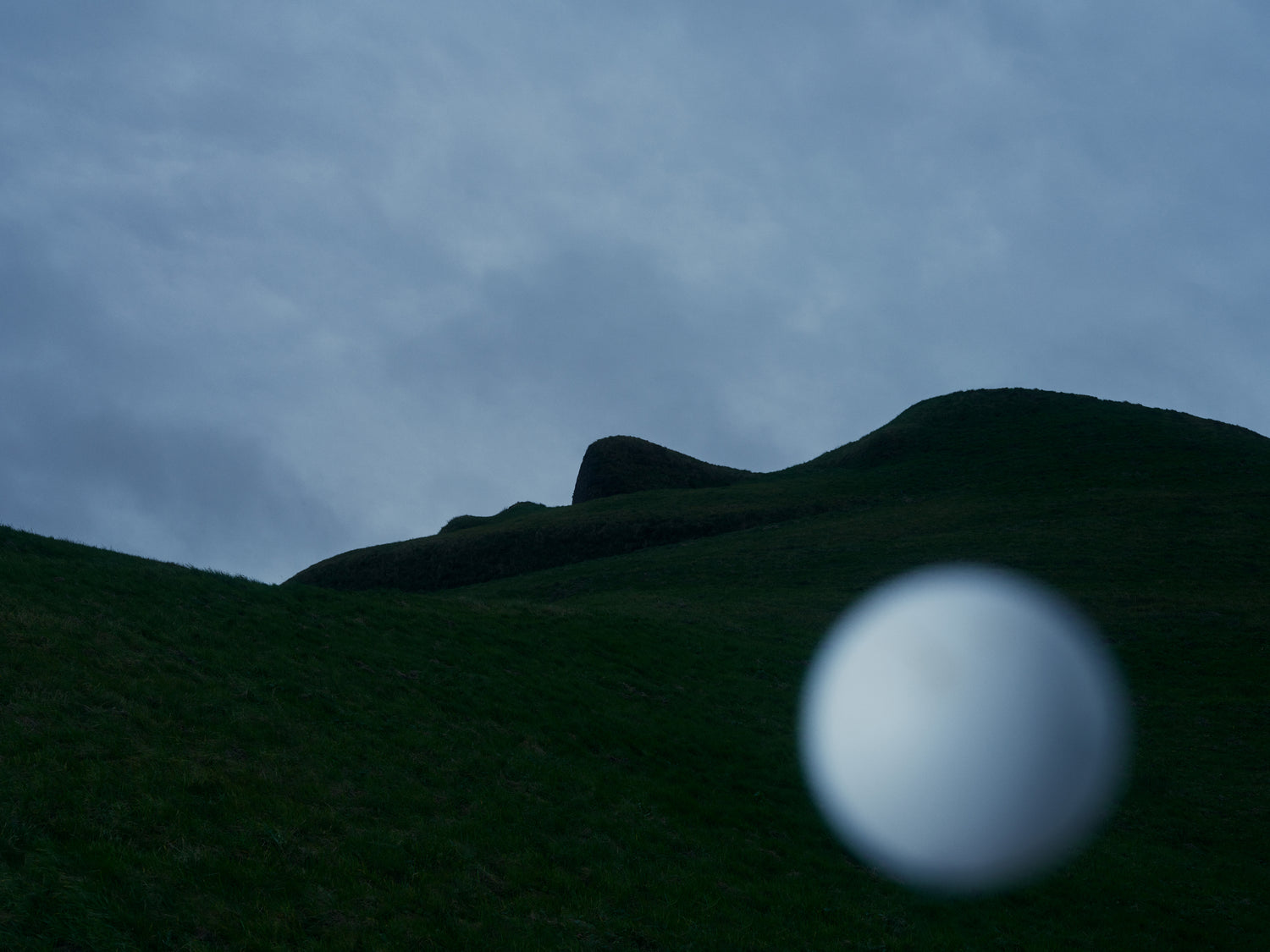 In the undulating landscape of Northumberlandia, two players engage in an otherworldly ping pong match.