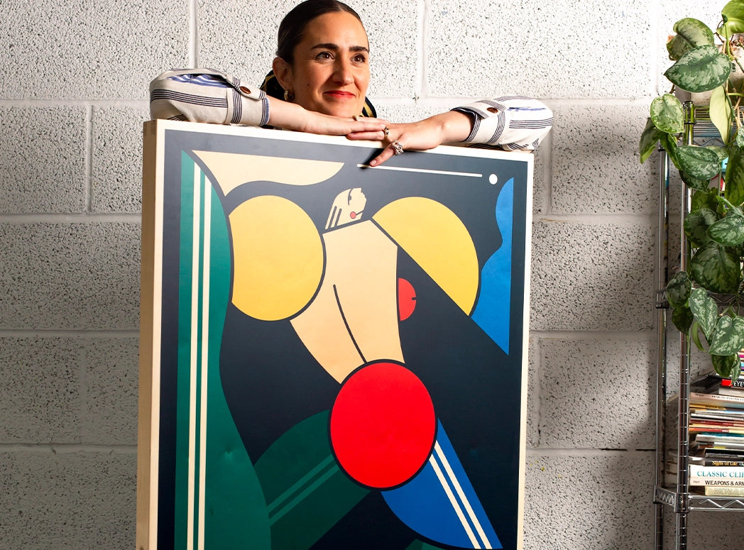 Kelly often draws inspiration from her background in fashion and sports, infusing her pieces with a sense of rhythm and fluidity. With her bold and expressive style, Kelly frequently incorporates themes of femininity and empowerment, celebrating women’s strength and grace through her art. Her work often merges traditional painting techniques with contemporary elements, creating a unique visual language.