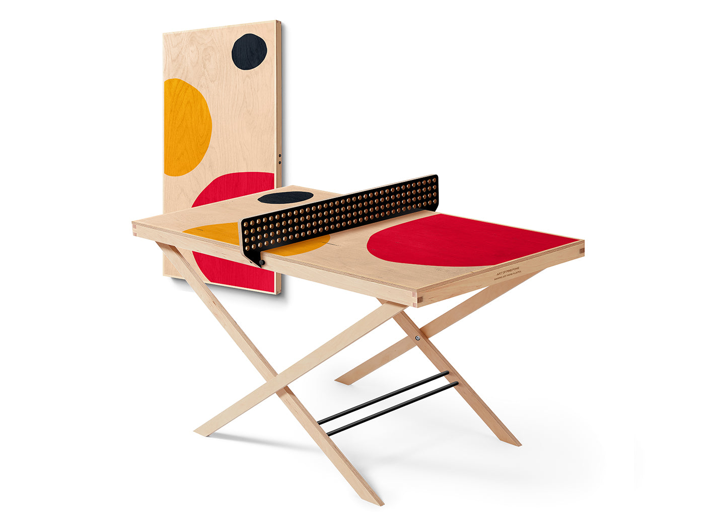 Each ArtTable comes pre-assembled and ready for instant use with its own solid net, two table tennis bats and four balls.