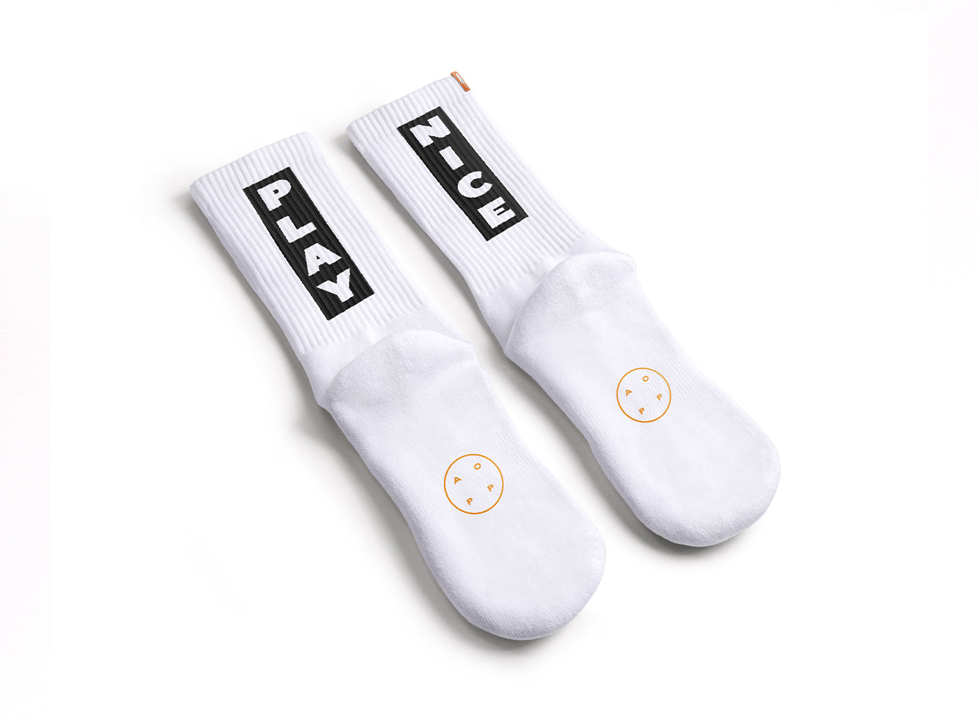 Made in Portugal from a soft cotton blend, the Play Nice Socks bring comfort and character to whatever you’re doing — or not doing. Inspired by our Play Nice mantra: ego’s boring, kindness looks better.